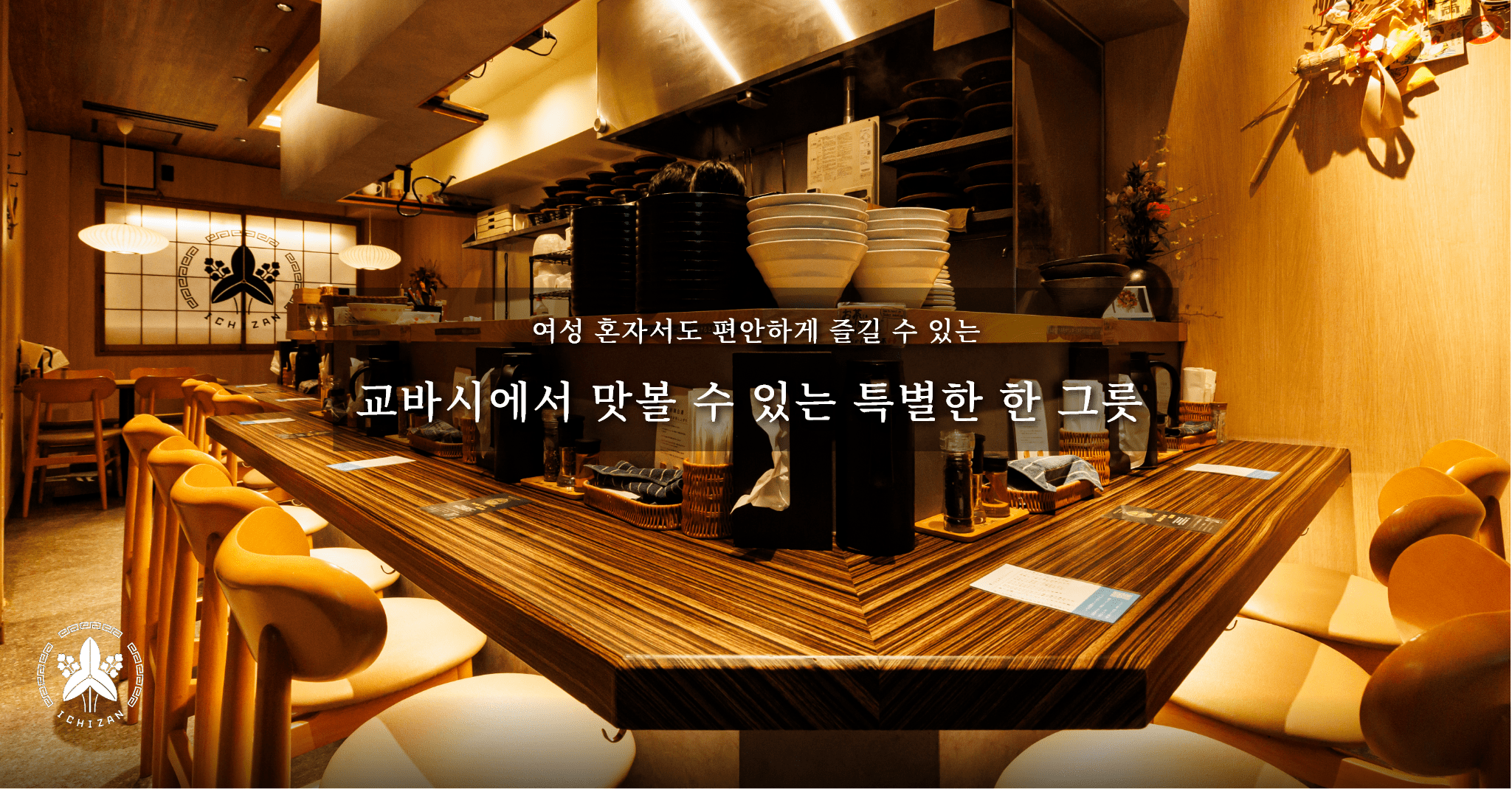 라멘집답지 않은 고급스러움을 선사합니다. 고요하고 품격 있는 분위기 속에서 편안한 시간을 보내실 수 있습니다. 여성 혼자서도 부담 없이 식사를 즐길 수 있는 안락한 공간을 준비했습니다.